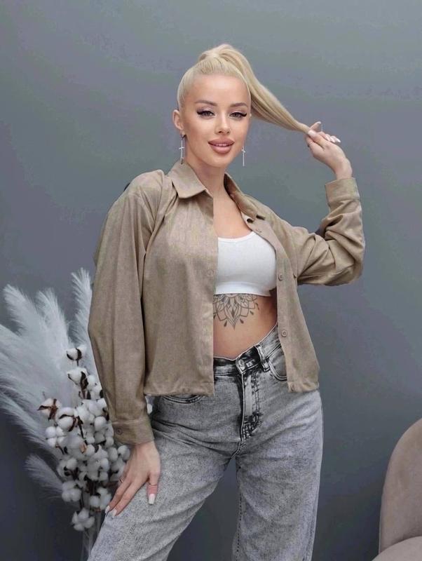 В наличии стильная и трендовая вельветовая рубашка со спущенным плечом. Рубашка укороченная на пуговицах с воротником и декоративным карманом на груди. По низу резинка-затяжка. Модель 129 Тканина: Вельвет Размеры: S/M, M/L Замеры на фото
