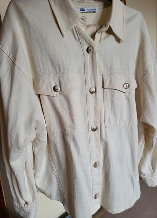 Рубашка от Zara, модель оверсайз в молочном цвете. Очень стильная. Купляла за кордоном. Надягла пару раз. Продаю так как похудела и она стала немного больше на меня. Стан идеален, без дефектов и нюансов. Размер XS-S, но за счет того, что модель оверсайз, то будет и на M. Ткань коттон, не плотная и не очень тонкая, очень приятная на ощупь. Замеры смотрите на фото.