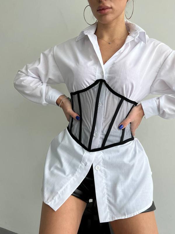 Базова сорочка мод.053 Фото наживо Размер:42-46 oversize Тканина: котон Цвета:белый корсет не продается