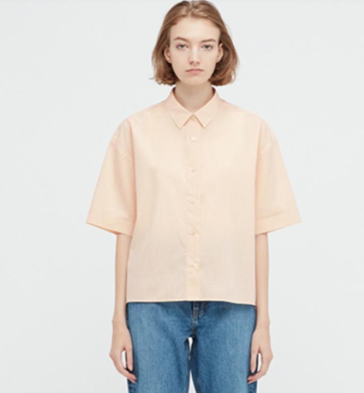 Коттоновая рубашка в размере М, оверсайз от uniqlo, полными на пуговицы, короткие широкие рукав.