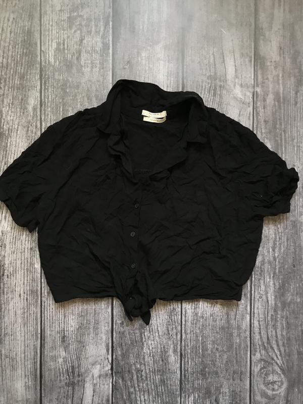 вкорочена рубашка чорна Pull&Bear Чудовий стан На гудзиках Ззаду на резинці