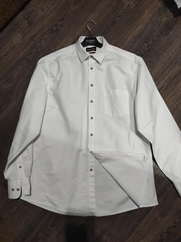 Рубашка мужчина/женщина Bernd Berger. Размер указан L(48), по вороту 41-42, реально подойдет на M(46)-L(48), но лучше ориентироваться на замеры. Замеры: плечи 48 см, расстояние от подмышки до подмышки 63 см, длина рукава 63,5 см, длина рубашки 80,5 см. Состав ткани 100% хлопок(плотный, не просвечивает). Состояние идеальное. Дефектов и нюансов нет. Фото на теле нет.