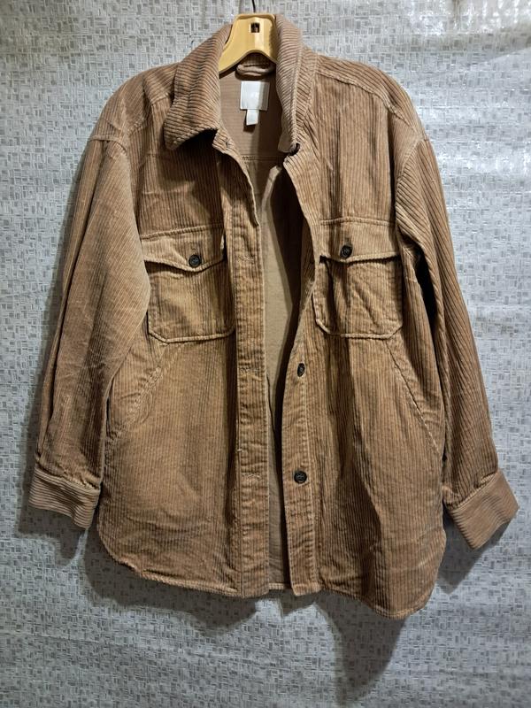 Сорочка-піджак з 4ма функціонуючими карманами(2 вшиті, 2 накладні на області грудей, на гудзиках). застібається на гудзики. стан нової. тепла, плотна, без підкадки). На розмір С,буде оверсайз. заміри: Довжина по спинці від коміра-75 см. Ширина по прлочцв- 52 см Від пахви до пахви- 62 см довжина рукава від плечового шва - 55 см