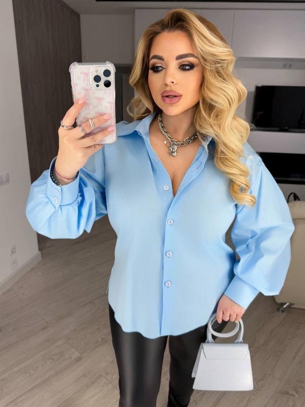 Женская модная рубашка. Модель имеет красивые нарядные рукава Изготовлено изделие из качественного облегченного натурального коттона. Модель прямого фасона, с длинным приспущенным рукавом на манжете и отложным воротником. Застегивается на пуговицы. Сезон весна -лето! Мод. 414 Размеры : 48-52,54-58 Цвет: голубой, белый, черный Тканина : котон х/б