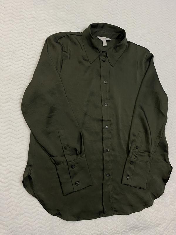 Рубашка H&M 🟢 ✅ Размер: M-L ✅ Цвет: хаки ✅ Ткань: легкая, не просвечивающая ✅ Длина по спине: 71 см ✅ ПОГ: 55 см ✅ Состояние: отличный Заказывайте сейчас! 🚀