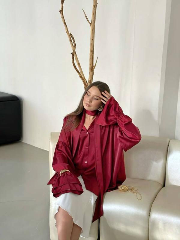 Рубашка, цена 980 грн ▪️Артикул: R851/7096 ▪️Размир: 42-46 ▪️Тканина: шовк костюмка ▪️Цвет: молоко, красный есть наложенный платеж с предоплатой