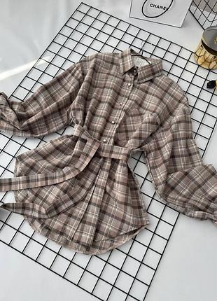 Сорочка Мод 407 Размеры : 42-44, 46-48 Тканина : фланель Цвет: беж, серая Стильная и легкая рубашка, идеальная вещь, которая подойдет к любому образу! Пояс идет в комплекте!