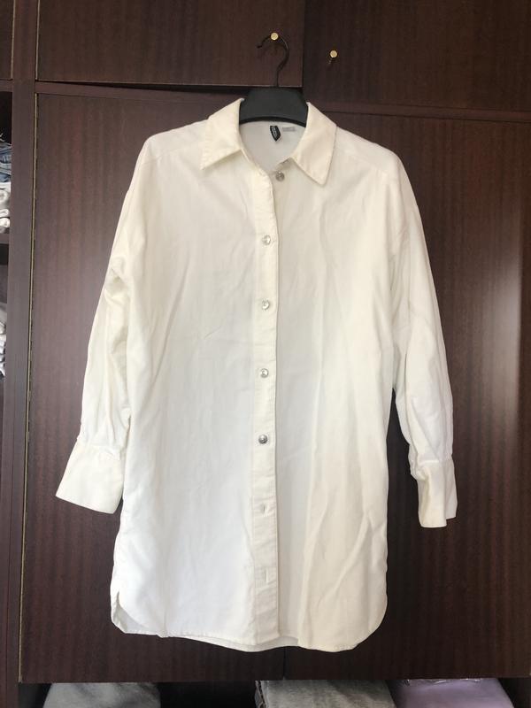 Сорочка - сукня DIVIDED, розмір XS зріст 160/80. Доволі вільна, підійде і на S і на М. Мікро вельвет 100% cotton. Колір молочний. Має лямки для поясу, закруглені бока внизу. Спинка 90 см Рукав від горловини до краю 75 см ПОГ 56 см