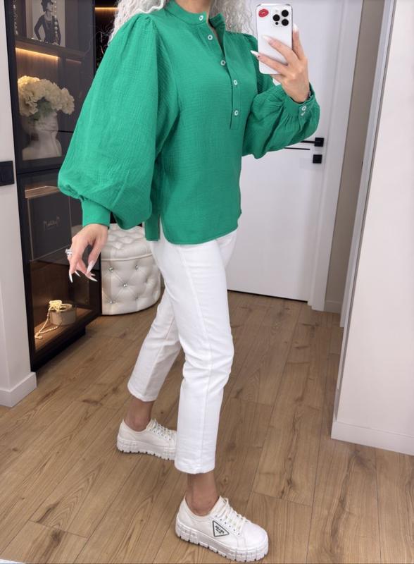 Рубашка из муслина - незаменимый атрибут любого гардероба. Ее можно носить в повседневной жизни на работу, на прогулку, на важный праздник, на романтическое свидание. Идеально подходит под джинсы, брюки, юбки, шорты. Изысканная рубашка со стойкой воротом на пять рабочих пуговиц. Легкий объемный рукав на манжете. Ткань: муслин (100% хлопок) Муслин обладает преимуществами в легкости, практичности и очень красивом внешнем виде. Цвета: мята, белый, голубой, мокко, трава, малина Размеры: 42-44, 46-48, 50-52, 54-56