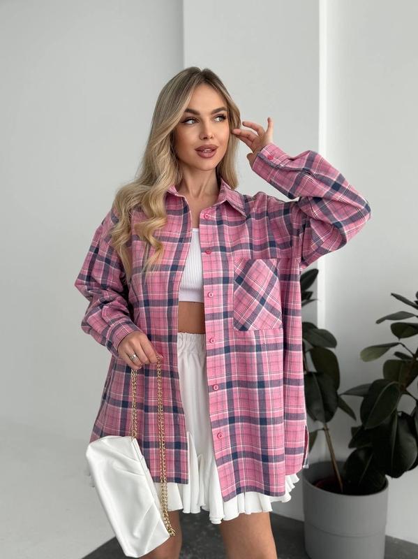 Женская рубашка в клетку удлиненная с длинным рукавом