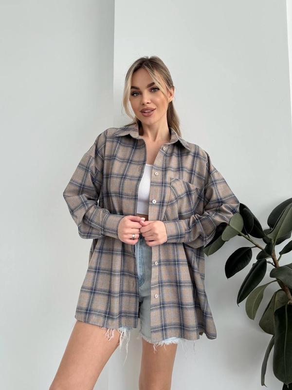 Женская рубашка в клетку удлиненная с длинным рукавом