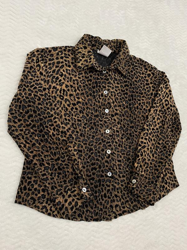 Рубашка C&A 🐆 ✅ Размер: M-L ✅ Длина: 54 см ✅ Пог: 49 см ✅ Леопардовый принт, тянется, не просвечивает ✅ Состояние: отличный Заказывайте сейчас! 🚀