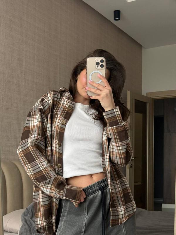 Сорочка ✅ Фото прицела ▪️Тканина: фланель ▪️Размер: one size ▪️Цвет: шоколад, синяя, бежевая с черным, бежевая с белым ▪️Модель: 229 🏷Цена: 810грн ✅ Отправка в течение 1-3 рабочих дней ✅ Безпечна оплата Трендовая рубашка, которая должна быть у каждой в гардеробе🌸 Для заказа обратитесь😊