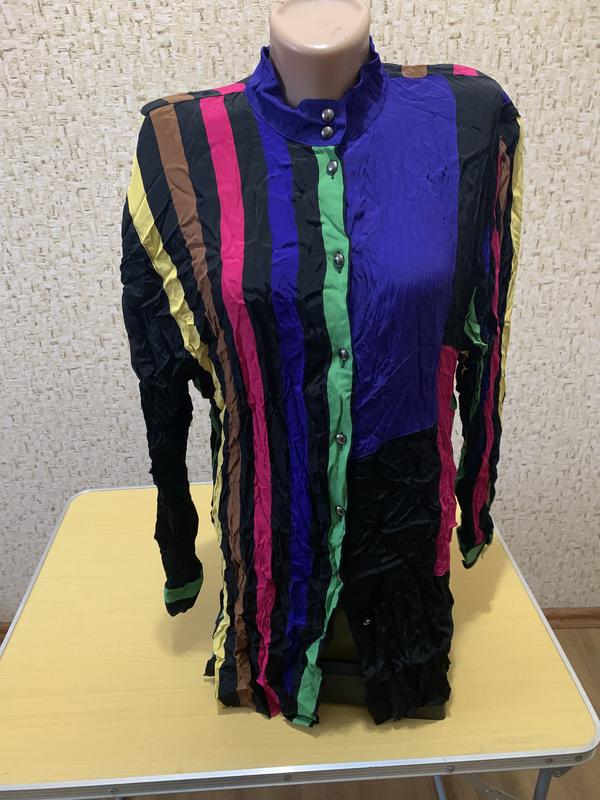 Эффектная женская рубашка, разноцветные с интересными пуговицами. Замеры на фото