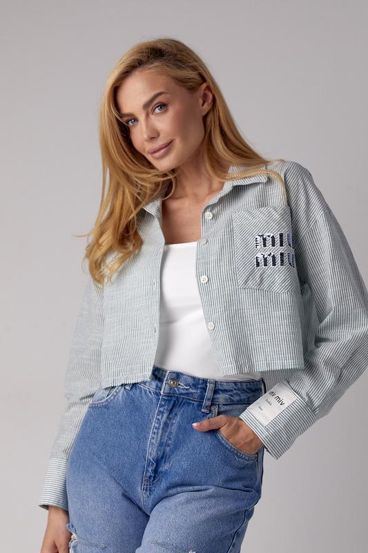 ВКОРОЧЕНА СОРОЧКА У СМУЖКУ ЗАМІРИ ВИРОБУ Длина переда изделия, см S - 44см; M - 44см; L - 45см Длина рукава от горловины, см S - 71см; M - 72см; L - 73см Ширина под проймами рукавов (над грудью), см S - 55см; M - 57см; L - 59см Длина рукава по внутреннему шву, см S - 41см; M - 42см; L - 43см РАЗМЕРНАЯ СЕТКА ХАРАКТЕРИСТИКА ТОВАРУ Страна Турция Материал Бавовна Состав ткани 98% бавовна, 2% еластан Параметры модели 89*70*95 рост 168 Размер на фото M ОПИС АРТ. 080524 Эта женская укороченная рубашка в полоску от LUREX - идеальный выбор для стильного и модного образа. Застежка на пуговицах обеспечивает удобство и практичность в использовании. Накладной карман слева, украшен надписью из пайеток, придает изделию особый шарм и оригинальность. Длинные рукава заканчиваются широкими манжетами с двумя пуговицами. Необработанный низ изделия придает ему непринужденности и некоторой игривости, подчеркивая индивидуальность и неповторимость вашего образа.