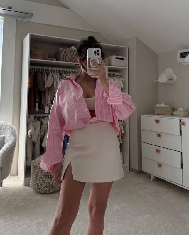 Новинка😍 Сорочка Мод.676 Кольори: рожева смужка Размеры: 42-44, 46-48 Ткань: лен Турция Твой новый объект желания 😍 Рубашка оригинального кроя, которая сейчас находится на самом пике популярности 🔥 Она 100% станет настоящим хитом❤️🔥
