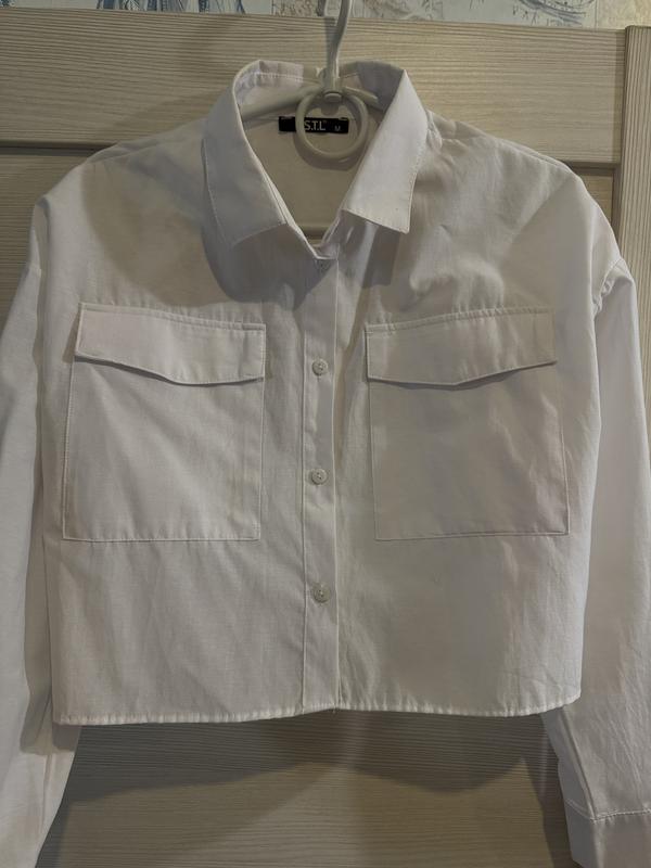 Белая, укороченная рубашка. Тоненькая , очень легкая Длина от ключицы - 45 см Новая, ни разу не надевала