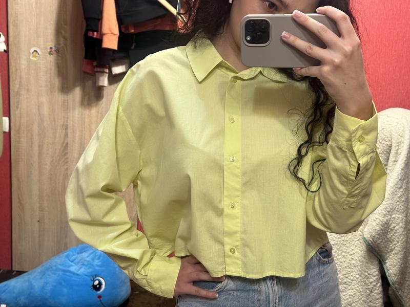 Укороченная рубашка, размер s Одетая 1 раз Красивый лаймовый цвет, фото не передает
