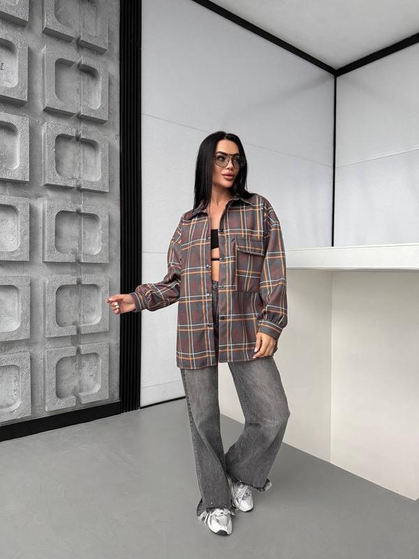 Рубашка в клетку (230) ▫️Ткань: кашемир ▫️Размер: 42-46 Универсал ▫️Цвета: шоколад, красный, зеленый, синий ▫️Цена 1130 гривен Оверсайз рубашки в клетку из кашемира - всегда незаменимая верхняя одежда в гардеробе по сезону. Свободный фасон, удлиненная - для твоего комфорта. Модные оттенки клетки. Застегивается на кнопки, имеет карман.