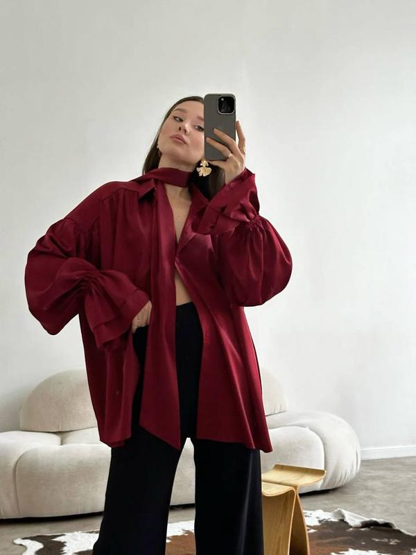 🤍Рубашка в стиле бохо, самый тёплый стиль года😎 комбинируется с почти любым элементом гардероба и придаст элегантности в любой образ. (Поясок из основной ткани идет в комплекте с рубашкой)✌🏻 ▫️Ткань: плотный софт ▫️Размер: универсальный (42-46) ▫️Цвет: белый, бургунди, капучино ▪️Мод.: 032 ☘️