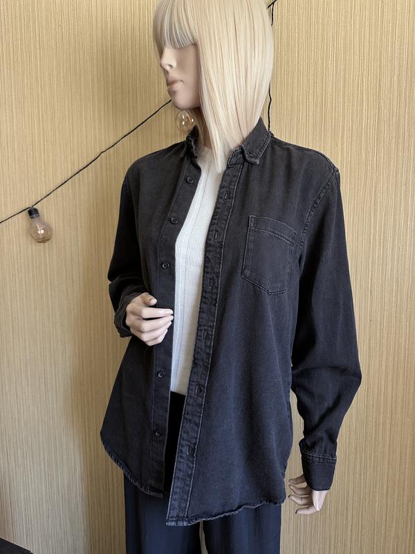 Джинсовая рубашка темно-серого цвета. Состояние идеальное. Размер указан мужской S. Длина 72 Рукав 64 Плечи 42 По груди 51