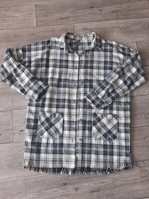 Рубашка в клетку оверсайз,рукав можно подвернуть и застегнуть.