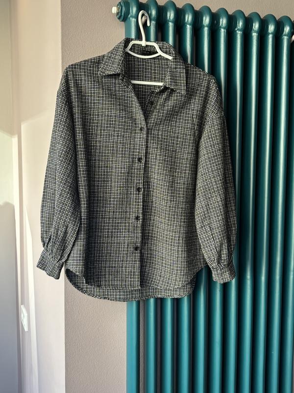 Классная верхняя рубашка в мелкую клетку, модель оверсайз с широкими рукавами. на невысокий рост размер указан S, подойдет и на М ПОГ 54 плечи 53 длиж макс 69 рукав 48 в идеале