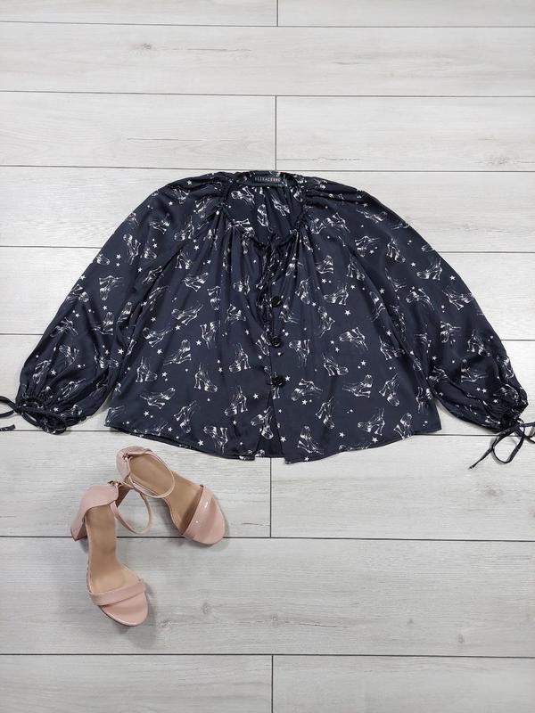 Атласная рубашка A•LEXACHUH•G от британской дизайнерки,редакторки V/o/g/u/e А•лексы Ч•aнг) Размер не указан, ориентировочно M см. Замеры Стан - идеальный Довж.58/60см Пог 57см, достаточно свободный и по фигурке присборенная за счет шнуровки по горловине поэтому на большой размер не подойдет. Рукав от горловины 64см Цвет угольно-серый.