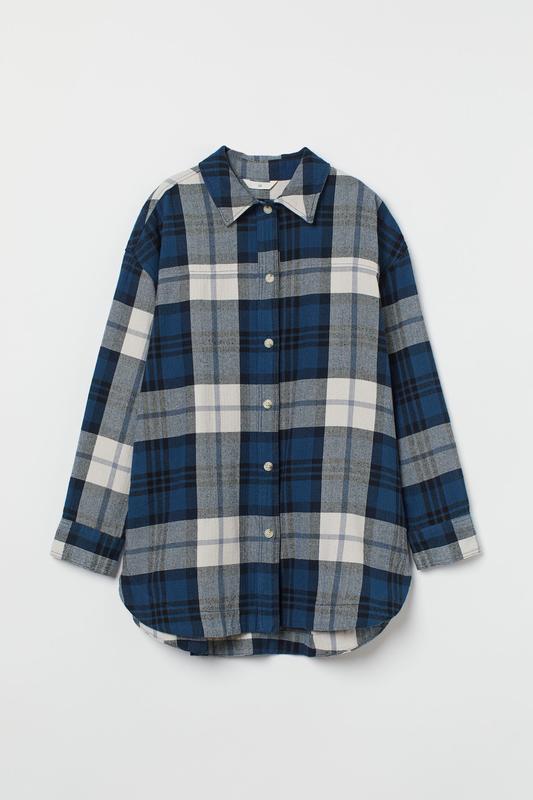 Стильна верхня обємна сорочка. Розмір М Заміри довжина 79см, ширина 67см, є бокові кармани, рукав спущений, довжина від плеча 71см. Верхня сорочка великого розміру з м’якої бавовняної тканини. Комір, гудзики спереду, кокетка спереду і ззаду зі складкою ззаду. Спущені плечі та довгі рукави з гудзиками на манжетах. Заокруглений низ, трохи подовжений ззаду. Без підкладки.