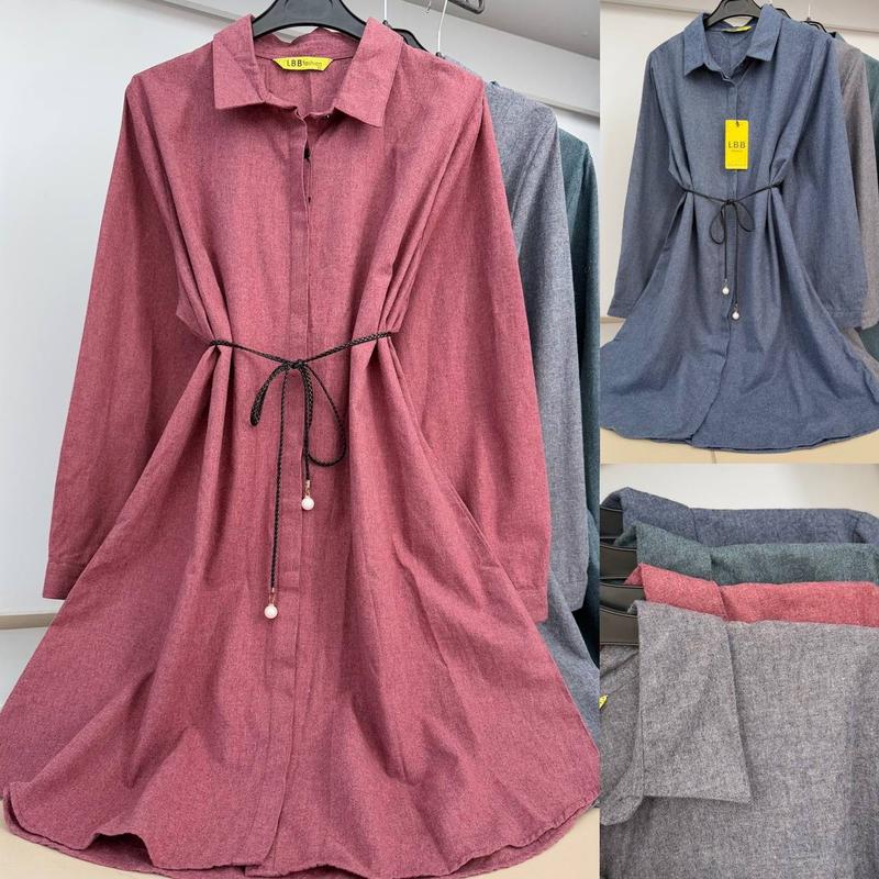 Можна носити як сукню та як верхній одяг 🖤 Якісні, виробник Туреччина 👌 Кольори: Джинс 52, 54,💙 Морська хвиля 46,50,54, 💚 вишневий 52, сірий 48,50❤️ Розміри 46-54 46: ПОГ 55, рукав 61, довжина 100 48: ПОГ 57, рукав 61, довжина 101 50: ПОГ 59, рукав 61, довжина 102 52: ПОГ 62, рукав 61, довжина 103 54: ПОГ 64, рукав 61, довжина 103см Поясок окремо