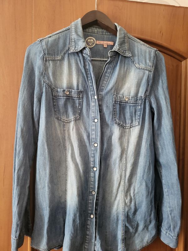 Стильная лёгкая джинсовая рубашка.12 Размер рукав перестегивается на три четверти. Красивая выварка,100%хлопок