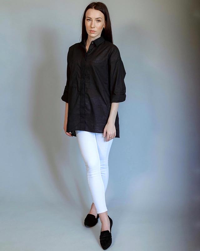 Черная рубашка (хлопок) 65 см -перед, 75- зад