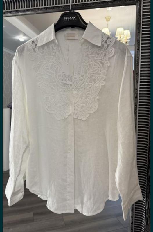 Белая льняная рубашка с вставкой из кружева Зимерман Качество премиум Размеры с,м,л