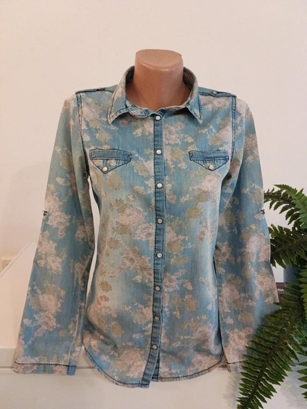 Женская джинсовая рубашка.Можно сказать в идеальном состоянии,есть небольшой дефект.на фото указала. Рукава регулируются,есть застёжка.можно носить как 3,4