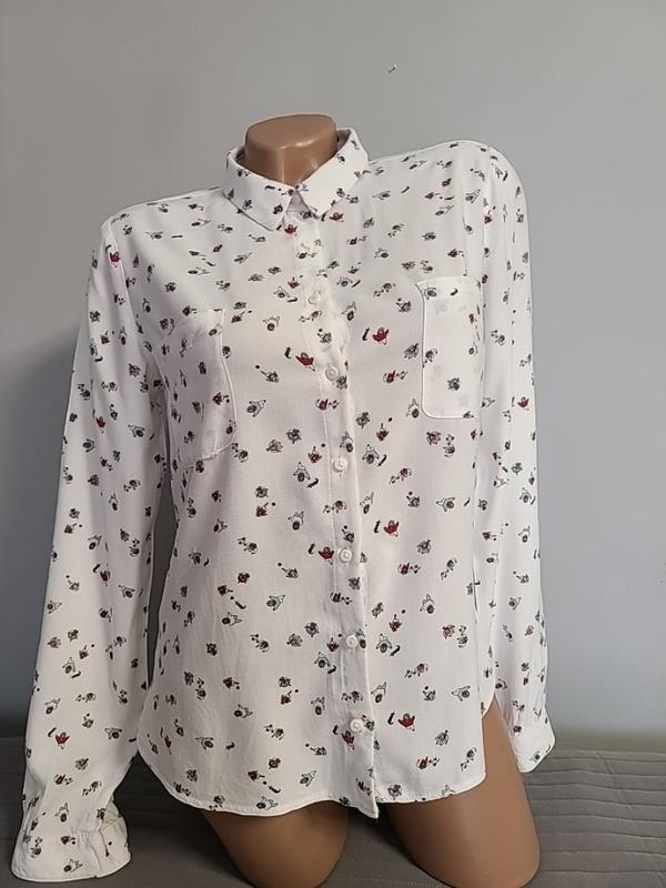 Рубашка 34 размер,замеры: плечи 39 см, рукав от плеча 60 см, пог 48 см, длинна спереди 56 см, сзади 66 см.