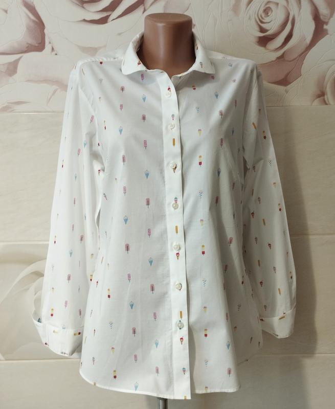 Отправка после полной оплаты на карту продавца. Новая почта,Укрпочта. Рубашка из тонкого хлопка,не тянется. Указан размер 12. Плечо-41 полуобхват груди подмышками-49,по вытачке-48 талии-46 низ-56 длина рукава-61(полуобхват по бицепсу 20) длина от плеча-69 Состояние новой.