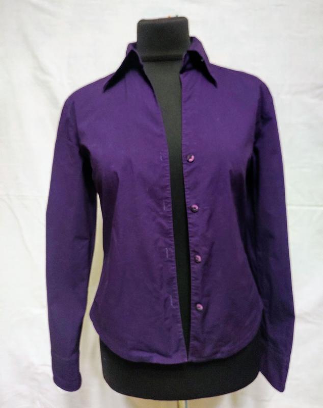 хлопковая рубашка красивого глубокого фиолетового цвета. от плеча до низа 57 см от подмышки до подмышки 46 см