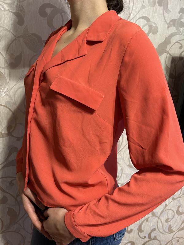 Обʼєм грудей 96 см, довжина 55 см, довжина рукава 59 см, плече 11,5 см. Блуза в ідеальному стані. Колір в житті трохи світліше, ніж на фото. На грудях імітація кишені. Тканина легка, приємна. Відправлю новою поштою.