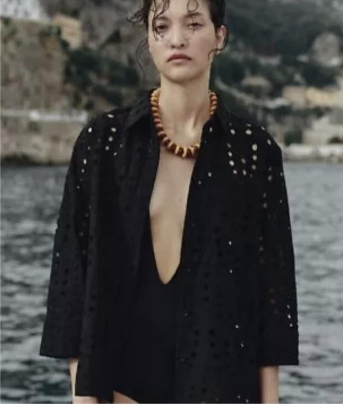 🌿черная рубашка прошва от Zara свободного кроя Размер:S Замеры:ПОГ 47 см, длина 61 см, рукав от горловины 58 см