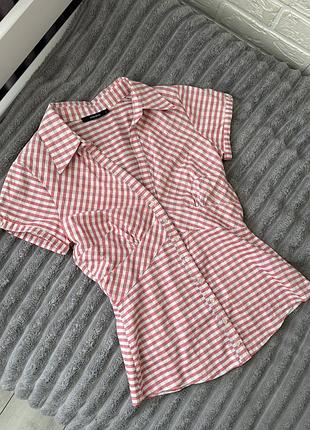 Яскрава літня сорочка Vero Moda в червону клітинку, розмір S-M. Класична червоно-біла клітинка "віші" та жіночний фасон з V-подібним вирізом та ефектом баски роблять її ідеальною для теплих днів. Приталений крій, короткі рукави, підкреслена талія, низ розширений (ефект баски). Рукав має регульовану довжину (можна підкотити і закріпити на ґудзик). Застібається на ґудзики. Матеріал дуже легкий та дихаючий, комфортний у спеку. Стан ідеальний, без жодних дефектів.