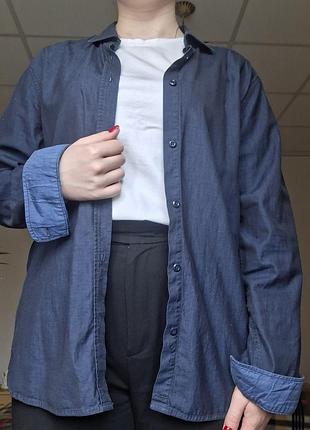 Рубашка в красивом состоянии. Размер XL, но подойдет и на M/L, в качестве оверсайзайсайз. Ширина плечей 49см Длина рубашки 66см Длина рукава от горловины 74см Длина рука с манжетом 80см