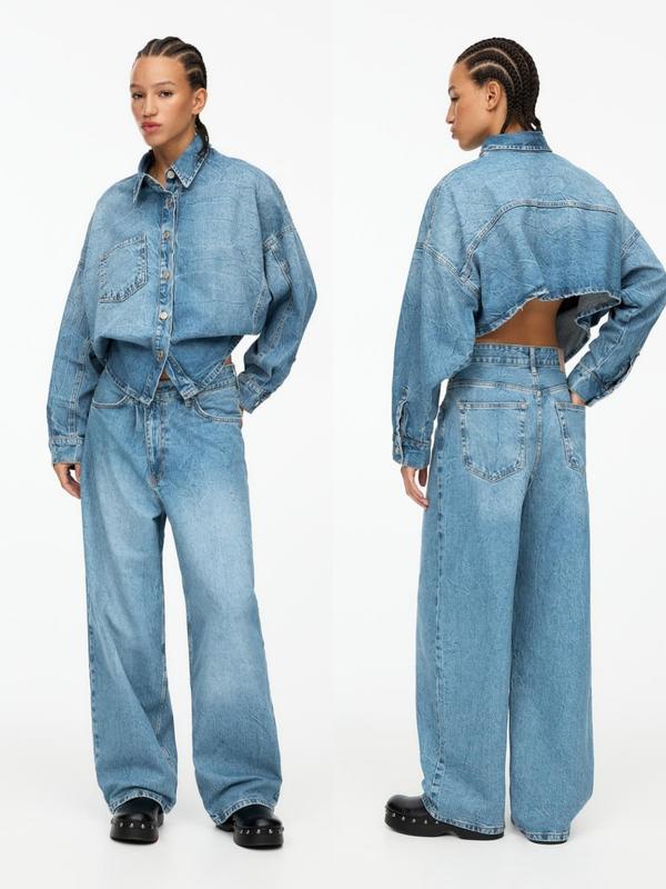 Укорочена джинсова сорочка PULL&BEAR Асимметричная хлопковая джинсовая рубашка с укороченным кроем сзади, застежкой на пуговицы, карманом спереди и длинными рукавами. Изготовлена из хлопка. ✨Состояние новое с бумажными бирками 🇪🇺 🔖 ✨Размер XS-S, M-L ✨100% БАВОВНАЯ