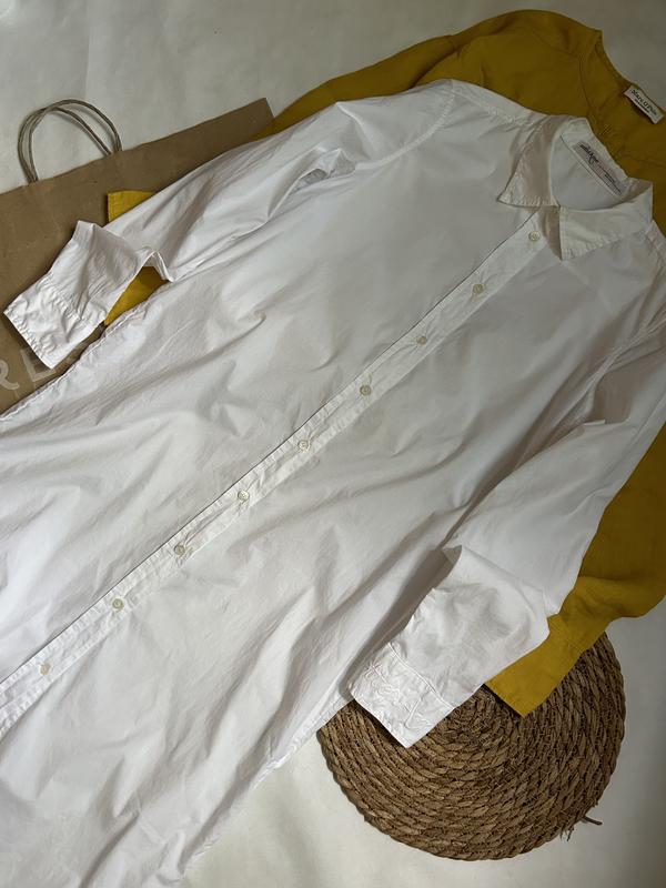 Рубашка платье из хрустящего хлопка, известный премиальный бренд. Качество супер. Натуральный материал, присутствует вышивка из лого бренда на рукаве. Базовая и стильная. Состояние идеал.