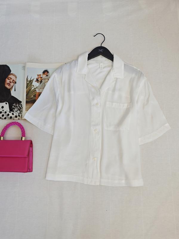 🌿легкая белая рубашка H&M кроя оверсайз, ткань вискоза Размер:S Замеры:ПОГ 59 см, длина 60