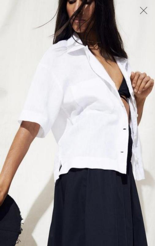 🌿льняная белая рубашка H&M кроя оверсайз Размер:М Замеры:ПОГ 59 см, длина 58