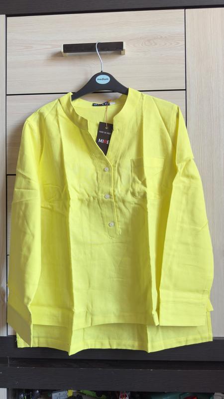 Сорочка льон в кольорі чорному та лимонному. Розмір М та Л. Пряма , рукав вільний без завуження до низу. Спереду трішки коротша . По бокам не значні розрізи .