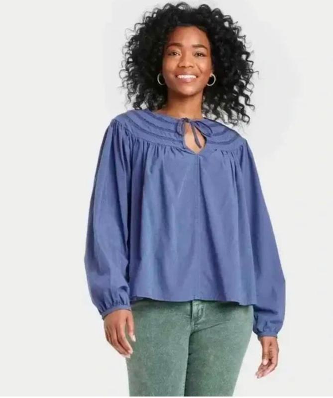 Блуза, рубашка , синяя , хлопок, вискоза universal thread