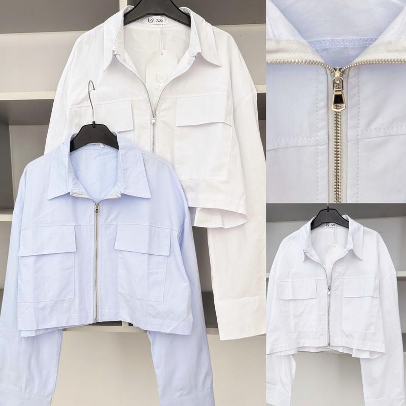 Ціна 350грн🔥🔥🔥 Стильні сорочки 🥰🥰🥰 На змійці Тканина Котон🌸 Кольори : білий та блакитний 🤍🩵 Розмір універсальний ПОГ 58, рукав 53, довжина 42см.