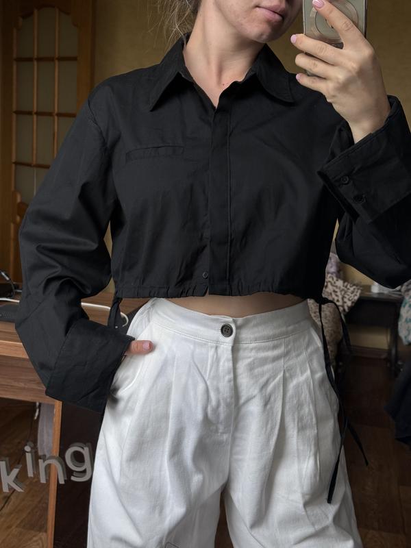 Дуже стильна чорна рубашка, від H&M , розмір пише de, але вона йде оверсайз, вкорочена, тому підходить і на s і навіть на м