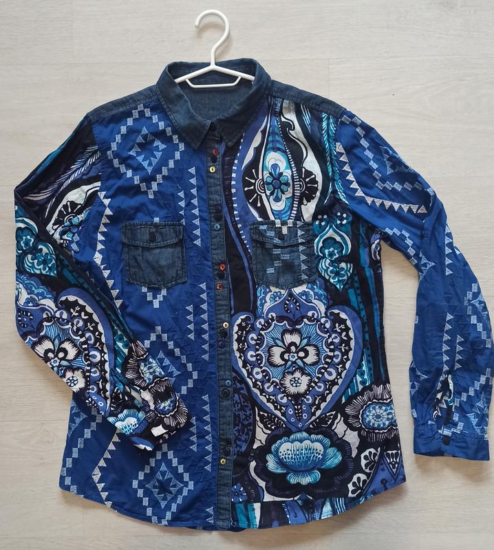 Рубашка рубашка от известного бренда DESIGUAL в размере XXL, длина изделия -72 см, ПОГ-55см, длина рукава-60 см. Рукав можно носить как и 3/4, фиксируется на пувичку. Комфортная и стильная, выполнена из тоненькой хлопковой ткани. ,
